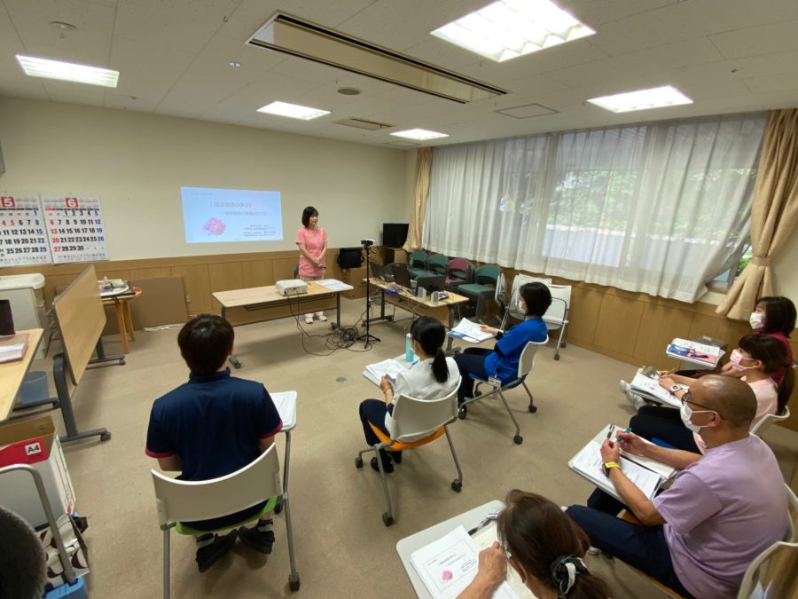 内容「英世会の沿革・感染対策・就業規則・高齢者の疾患について・認知症の人の理解とケア」等、実技研修はなかなかできませんが、入職された全職種の方が参加されました。