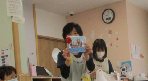 一人ずつ副園長先生からプレゼントを受け取りました。