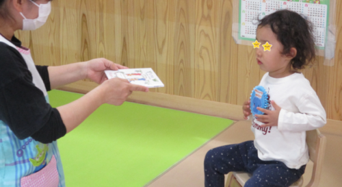 お名前を呼ばれるとお返事をしてすぐに前に出て来てくれた2歳児クラスのお姉さん💛