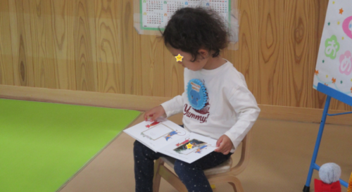 絵本を開いて嬉しそうにキラキラしたお目目でじっくり見ていました👀