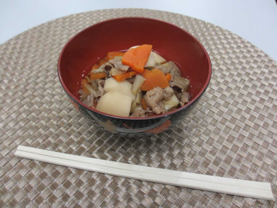 甘みの味付けで牛肉が柔らかく、🥕🥕人参、里芋、ごぼうからよい味が出て「おいしかった」と大好評でした。
