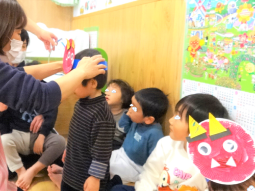 節分会の前日、「〇〇ちゃん、がんばる!」「いっしょにがんばろうね!」とお友だちと話して、はりきっていた子も😆