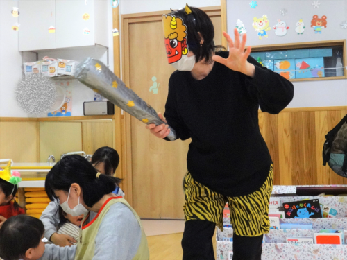 会の終了後には、ぞう組のお友だちから「鬼のお面、だれ先生がかぶってたのー?」と話す声も聞こえました🤭