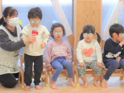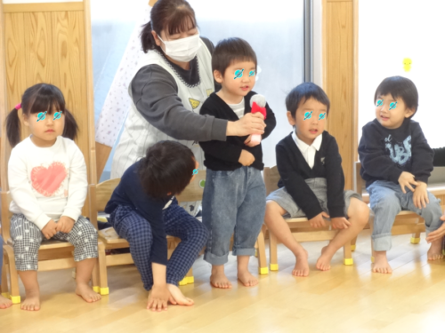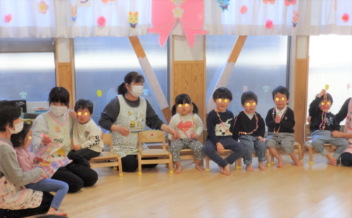 3月の終わり、2歳児ぞう組さんの卒園お祝い会をしました。