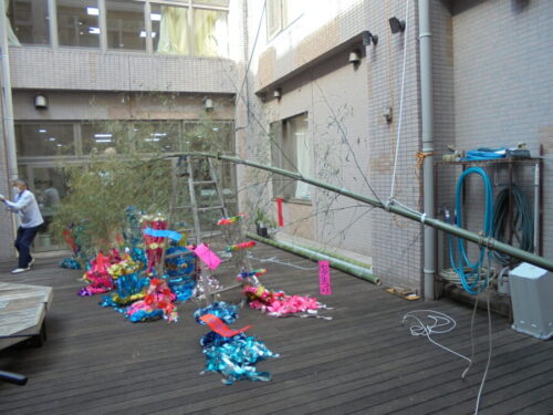 6月に入り、初夏の雰囲気が漂ってきましたね🎐サルビアでは、中庭に大きな七夕飾りが登場しました!まずは寝かせた状態で飾りを付けてから