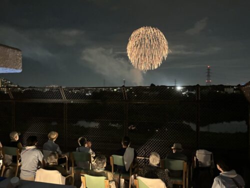 多摩川に面しているカトレアでは入所フロアでの鑑賞会は、新型コロナ感染症が登場する前は恒例でした。