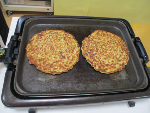 ホットプレートで焼いてデモンストレーションするため、利用者様の五感をフル活用のレクリエーションです。