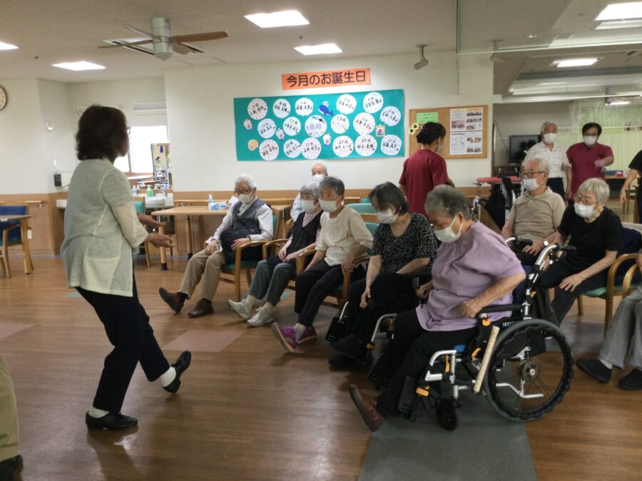 3階ご利用者、毎朝練習をしておられるので、ステップももう体が覚えているようで、ちゃんと音楽に合わせて踊っておられ、驚きました。