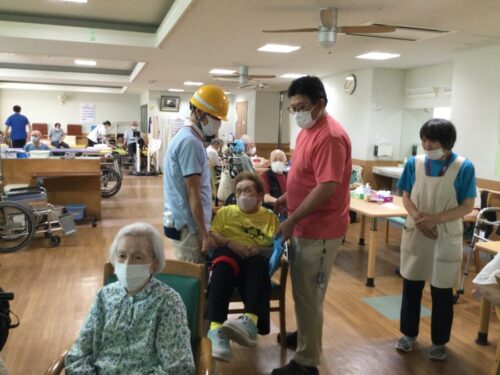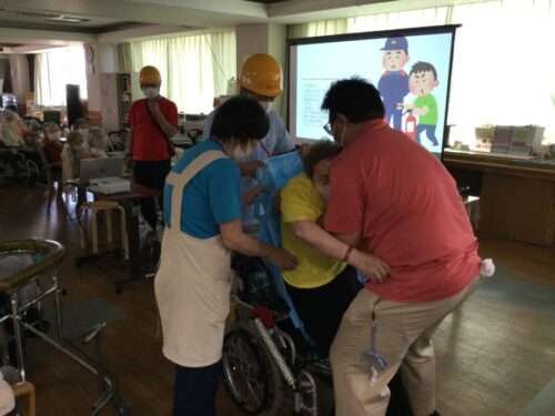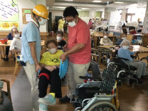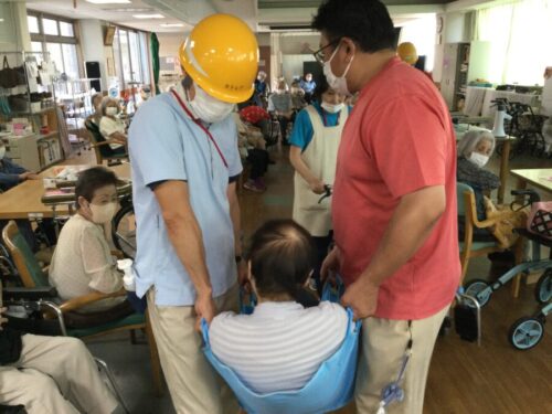 今日は防災の日!カトレアでは座位担架訓練を行いました。