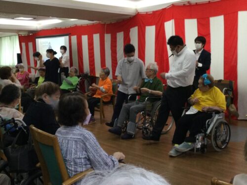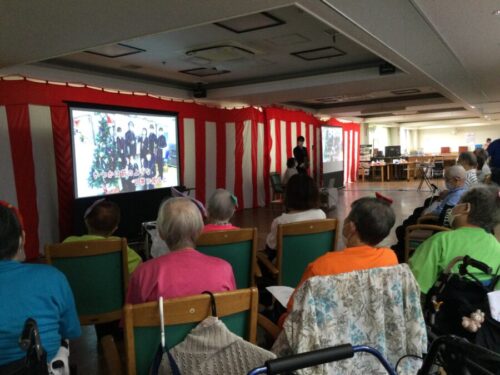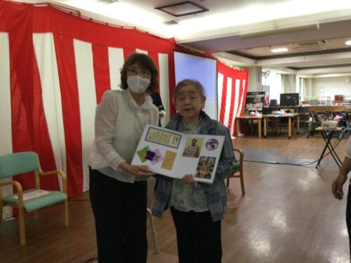 記念品贈呈のあと、事務長作成の『2025年あの人も賀寿 私は誰でショー』を鑑賞し、椅子タップダンスクラブによる『東京ブギウギ』のお披露目がありました。