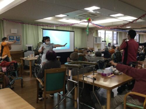 後半は秋の唄を合唱🎵看護師レク定番の『真っ赤な太陽』や『ダンシングヒーロー』を一緒に踊りました。