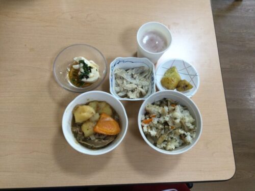 きのこご飯🍄・ごぼうサラダ・冷ややっこ・肉じゃがを作りました👍