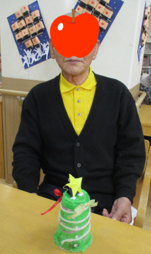 ロベリア通所リハビリのツリーの完成です。利用者様のお心の優しい光が宿っているようでした。