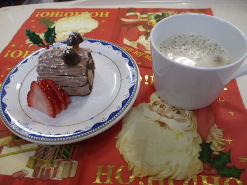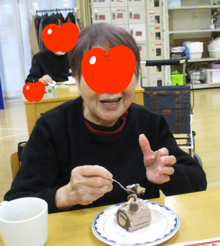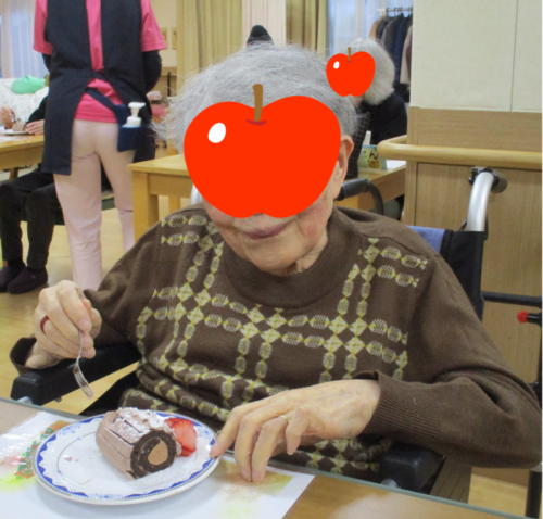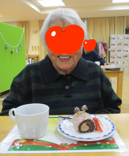 かわいいかわいいブッシュドノエルの登場に、目をキラキラ輝かせながら待ちわびる利用者の皆様。