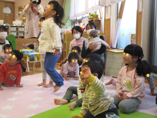 みんなが集まり、主役のひよこ組さんがみんなの前へ。