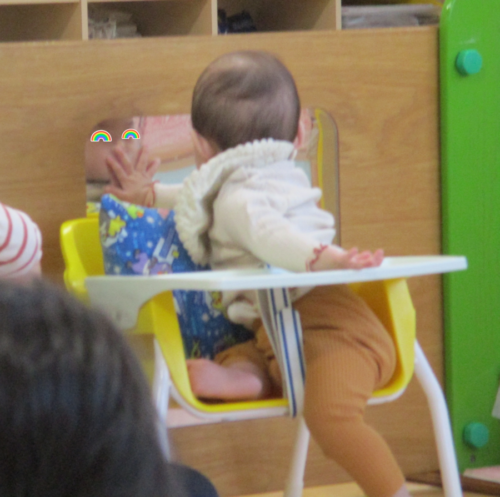 いつも仲良しなお友だちのお誕生会、鏡で身だしなみのチェックも🤭