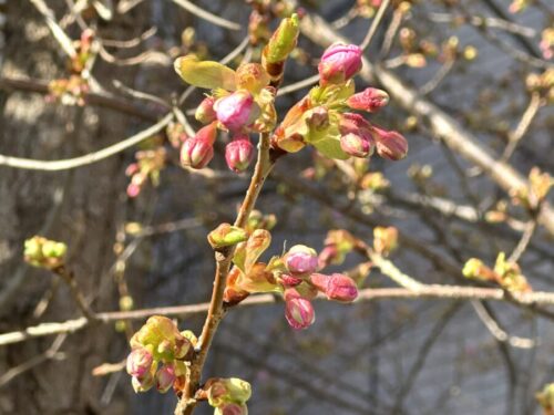 カトレア正面玄関横の河津桜の開花第一号は、なんと!1月5日でした🌸