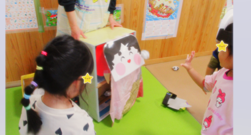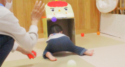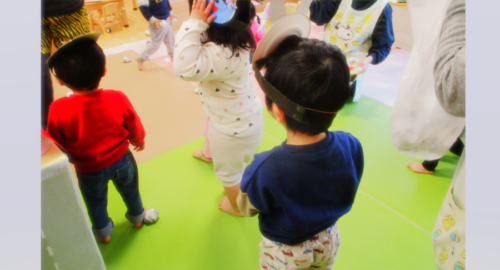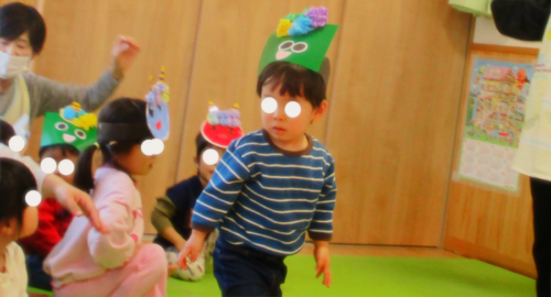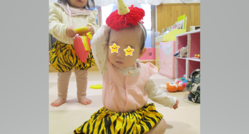 鬼さんがくるかな?とちょっと緊張気味で歌う1歳児さんと