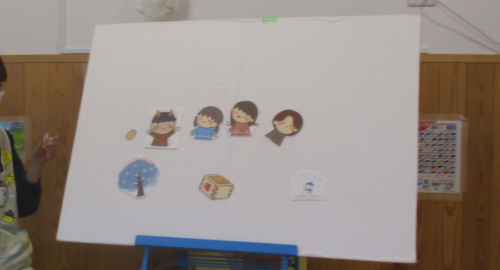 クラスごとに製作したお面やカバンをみんなに発表しました!